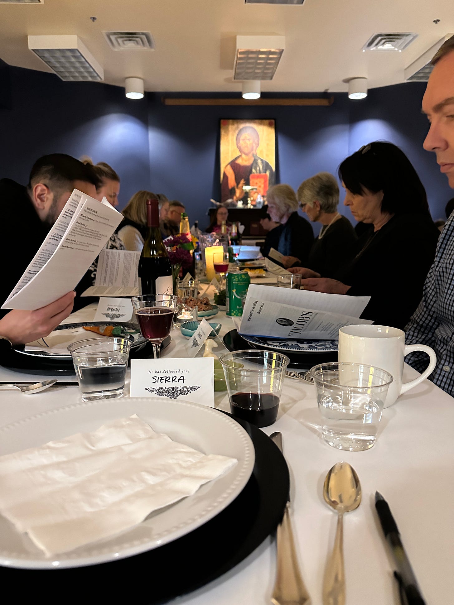 We had a wonderful Passover dinner this week. The biggest one yet! And after ten years it goes very smoothly, though it remains a lot of work. I’m deeply grateful for my mother-in-law again, for all she does to set up, tear down, wash dishes, clean corners, watch Kid while I work long hours, and generally keep the wheels of life well greased.
